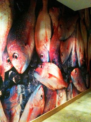 There’s a long hallway that is wallpapered with, what else, very large images of fish: