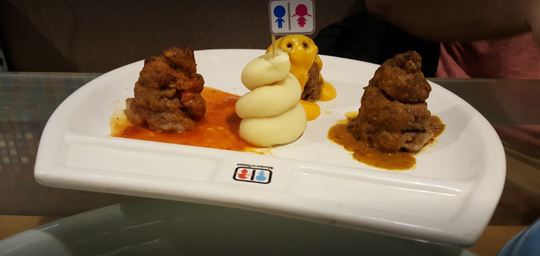 The other day, a co-worker, who also shares a love of food, sent me a link on Messenger about a themed restaurant in Taiwan called “Modern Toilet.” You may have heard of this place. It’s a celebration of what comes out of our bodies after we’ve digested our food — and the receptacles we use to deposit that, um, garbage. The video below is amusing and it gives viewers a good tour of the restaurant, its food, and all the little toilet gimmicks used to make people titter about the fact that they are eating food that looks like poop.