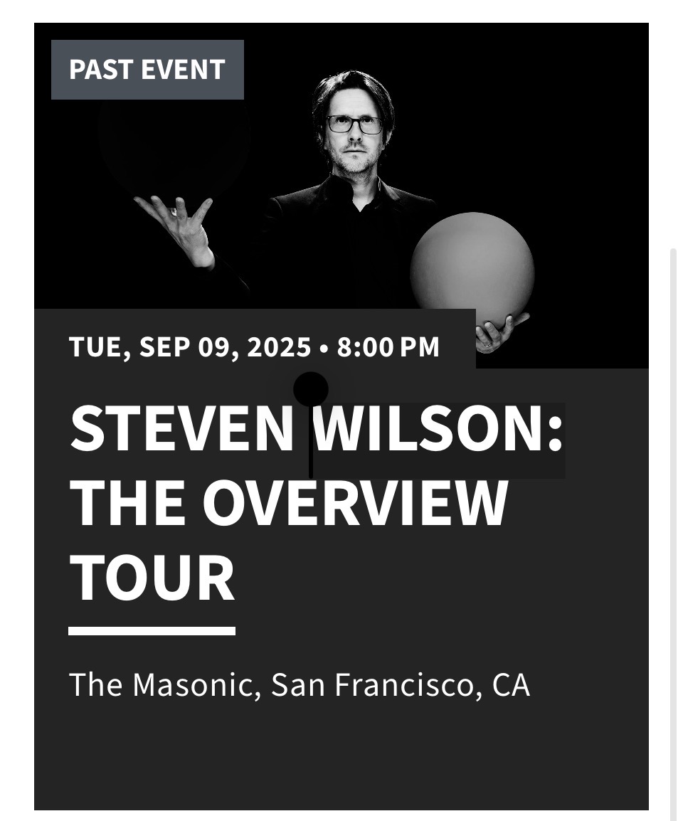 I also saw Steven Wilson in September at the Masonic Theater in San Francisco; it was about $100 a ticket.